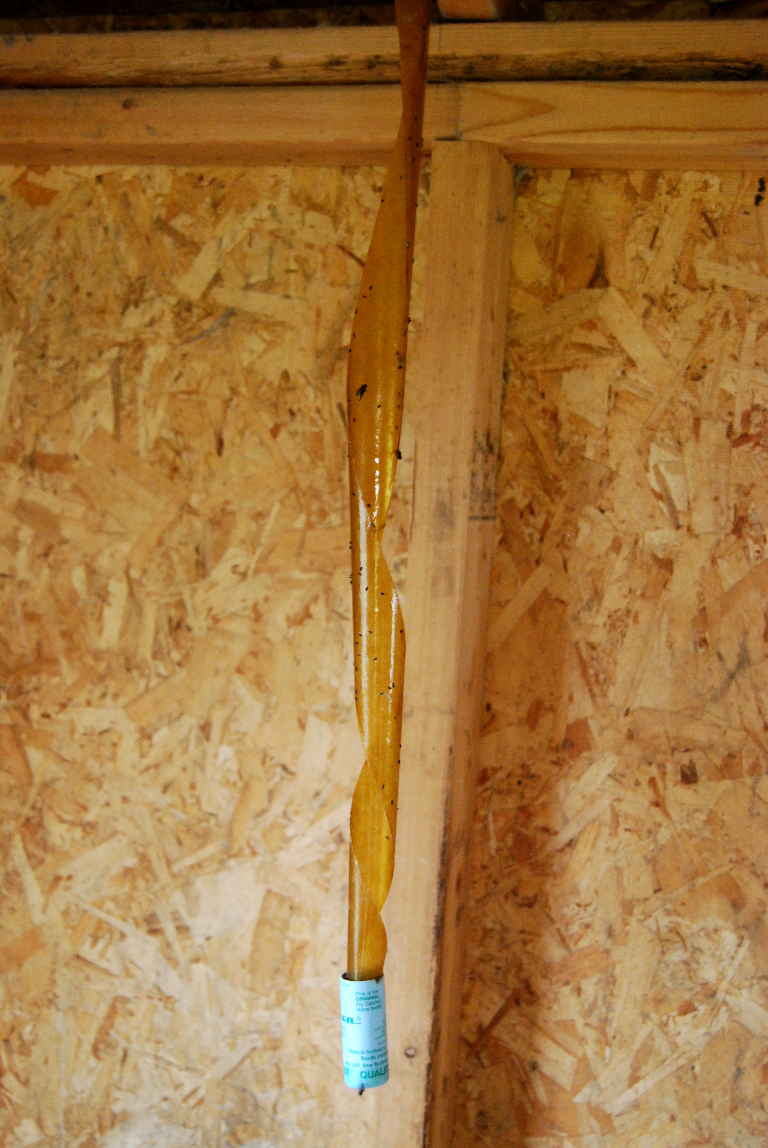 Good old fly strips work well but they need to be replaced often and you need to be careful not to get caught up in them.