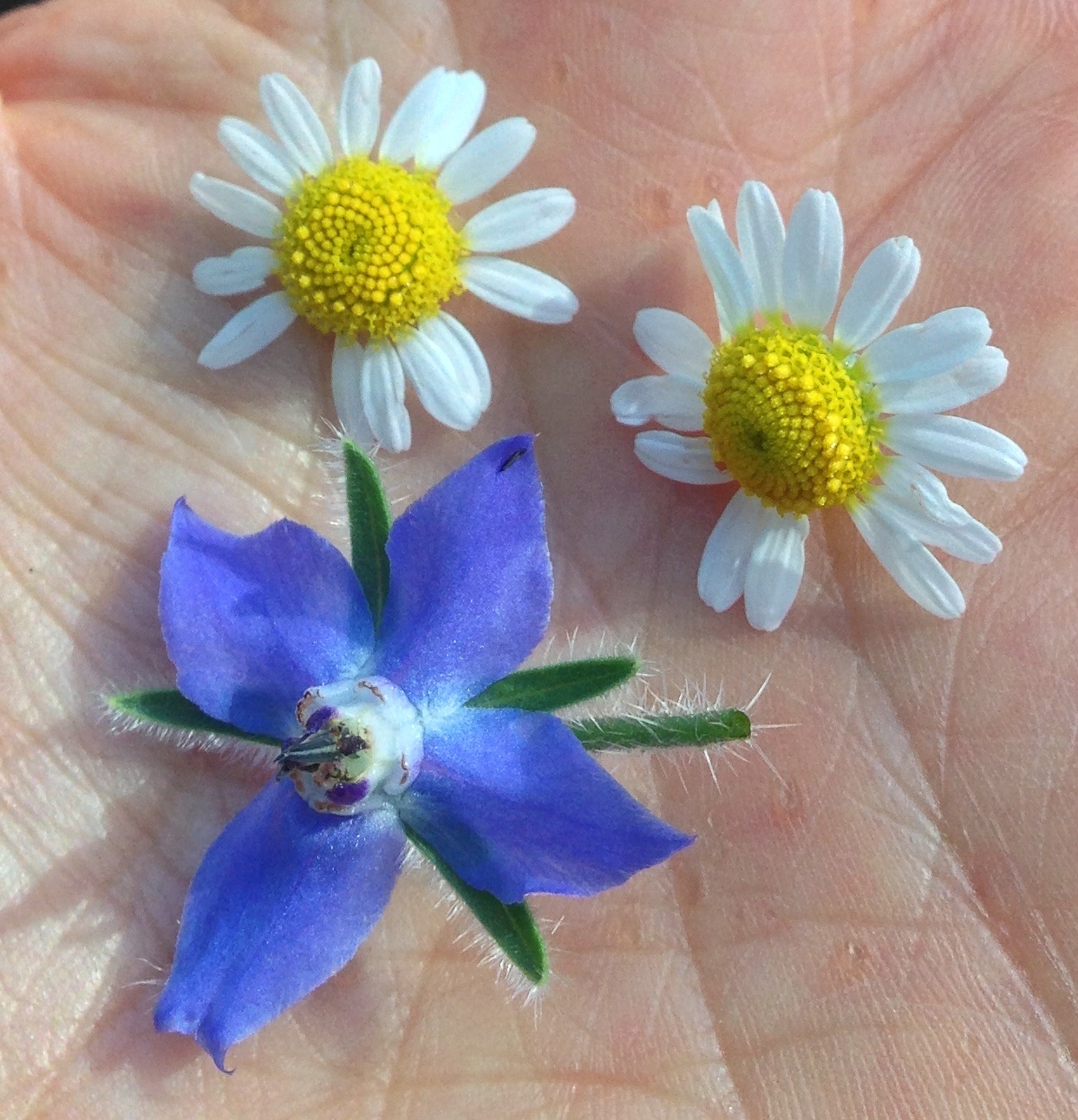 Some of the flowers like this borage and camomile, are edible.