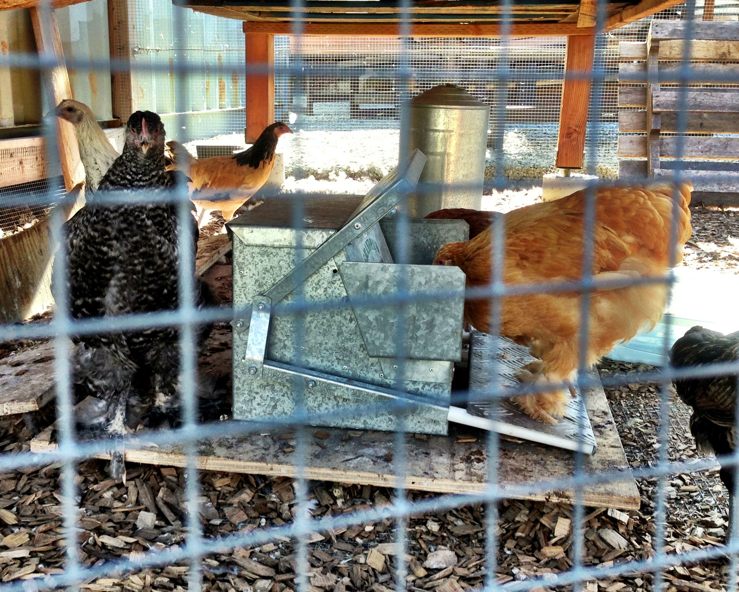 Here’s another style treadle feeder for a bigger flock. This one is more robust.