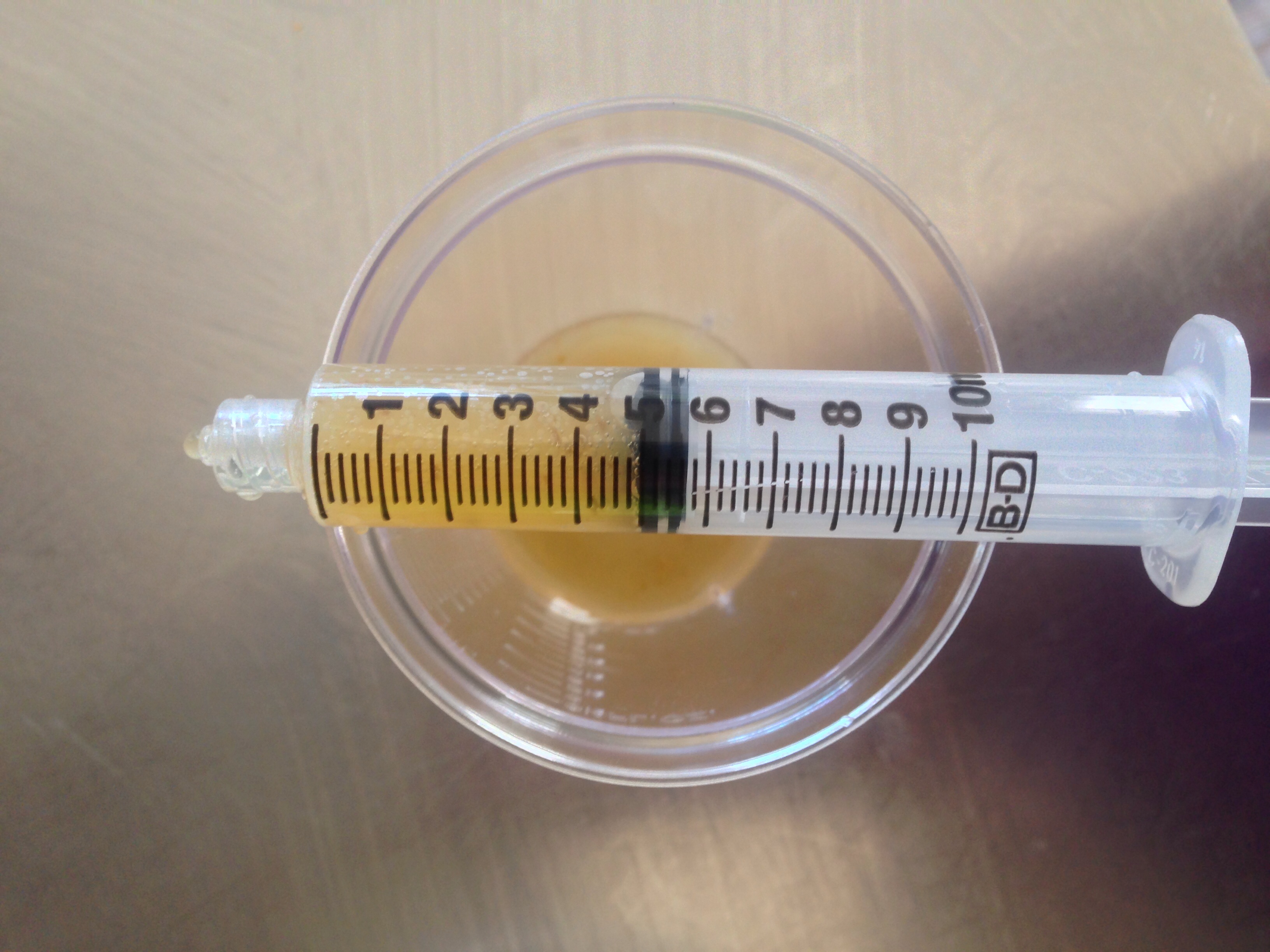 First draw up 15ml of wine and put it in a clear cup. Put the cup on a white piece of paper.
