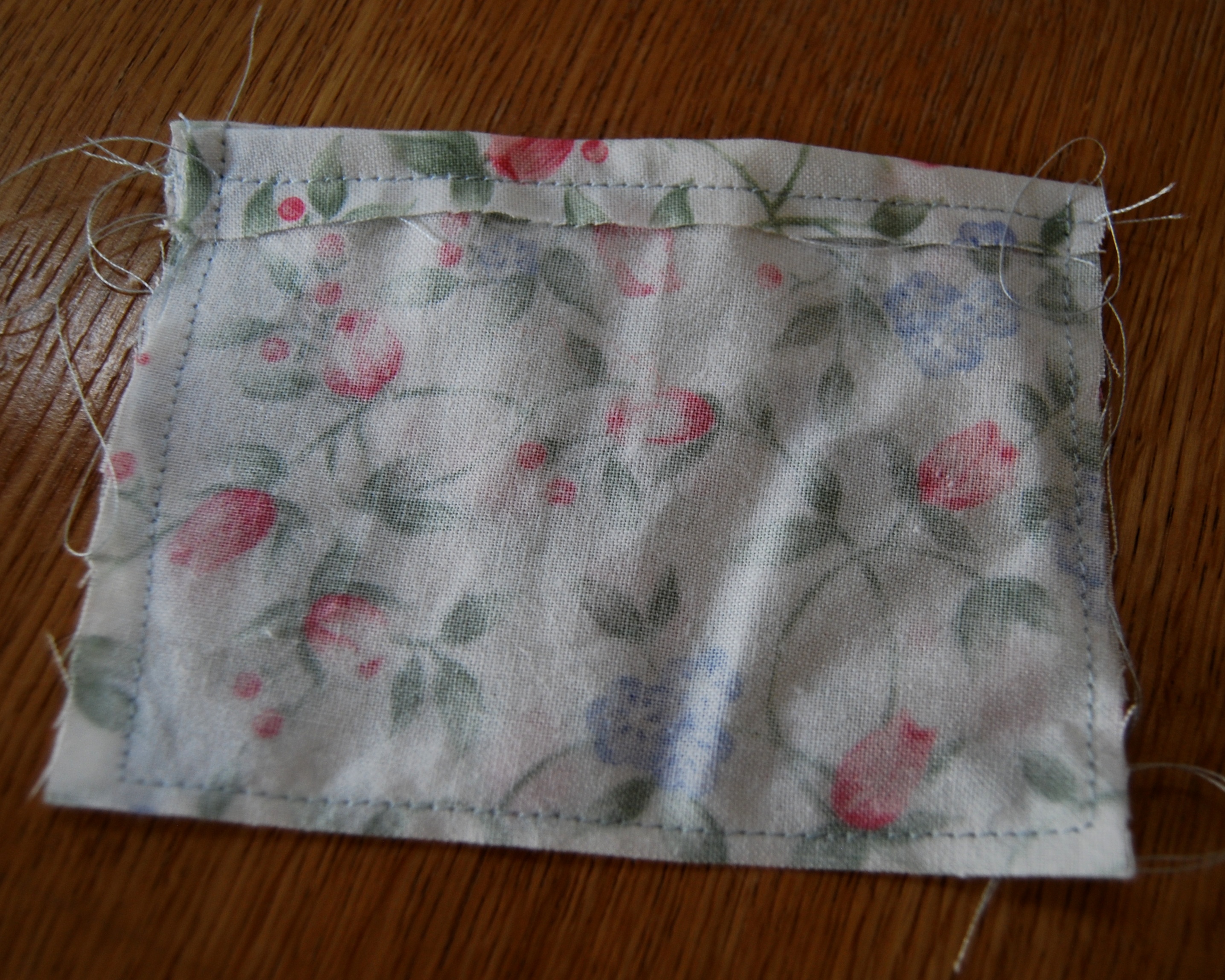 Cut fabric to size of sachet desired then turn over edges and sew with the right sides together.